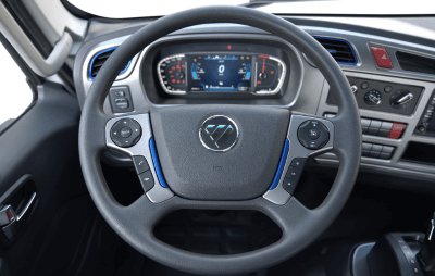 Cabine ampliada para uma visão mais ampla. Painel de instrumentos estilo automotivo com amplo espaço de armazenamento.